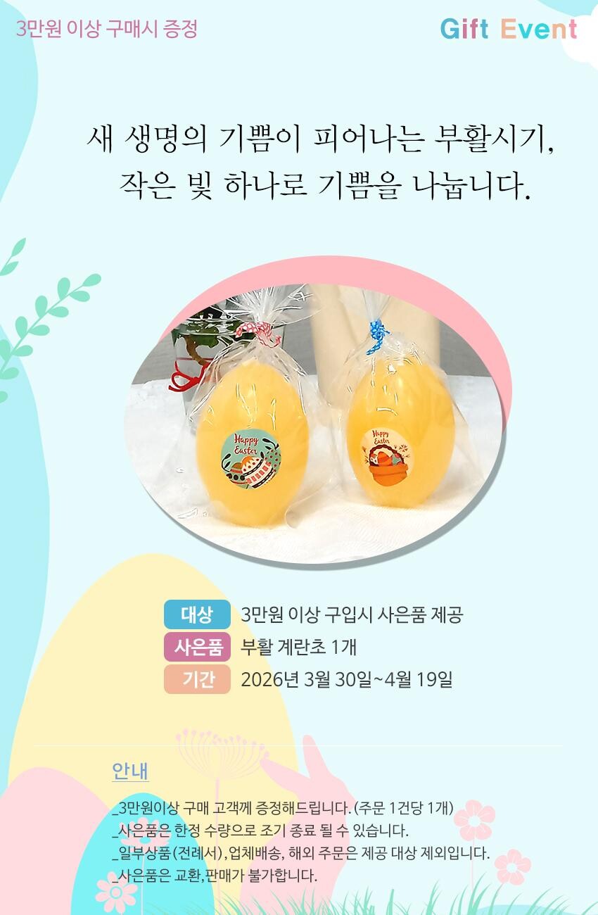 3만원 이상 구매시 부활초 증정(3/30~4/19)