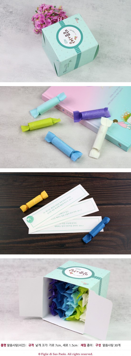 사랑의 샘이신 하느님의 말씀 30구절을 서간에서 선정하여 사탕처럼 둥글게 말아 담았습니다.