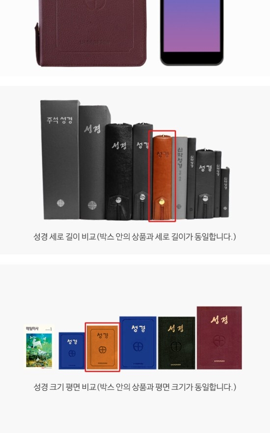 ● 성경 크기: 가로 13.5cm, 세로 19cm, 두께 4.5cm