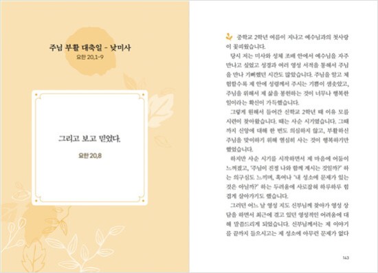 이처럼 살아 있는 주님 말씀 묵상과 기도를 통해 주님을 진하게 체험하고 이를 통해 우리에게 ‘빛’으로 다가오시는 주님을 만나 일상을 살아 낼 힘을 얻게 될 것이다.