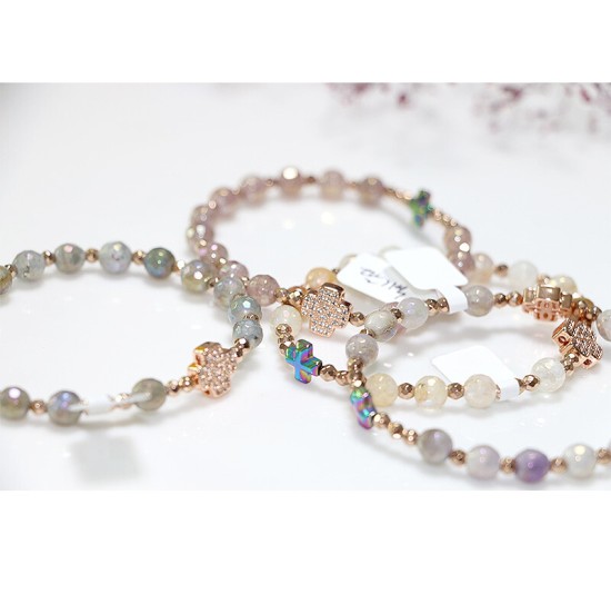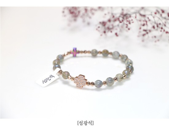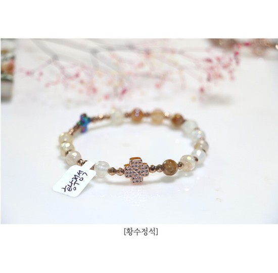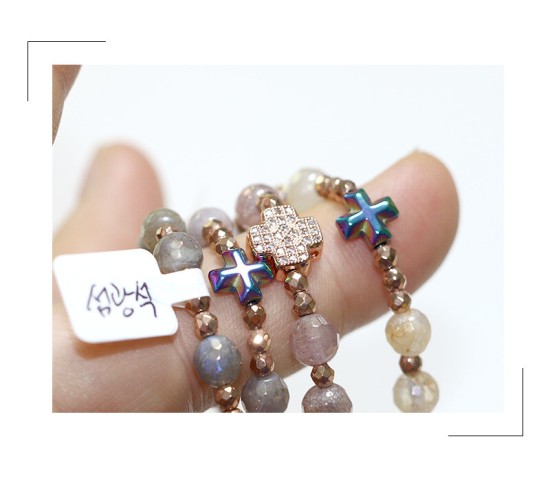 6mm 컷팅 천연보석알 + 컷팅로즈골드 헤미타이트(큐빅십자가)