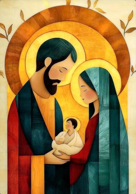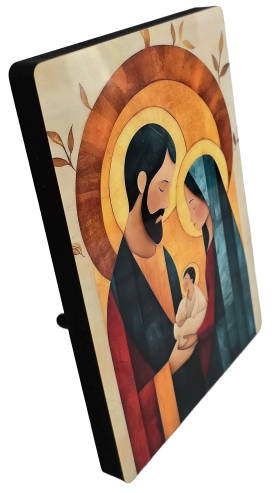 세 인물의 원형 후광은 성가정 전체가 하느님의 거룩함 안에 있음을 시각적으로 표현한다.
