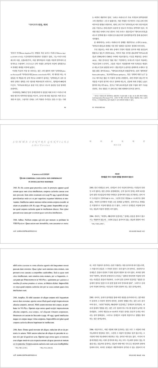 『대이교도대전』의 라틴어 원전은 네 권(liber)으로 구성되어 있는데, III권은 다른 권들에 비해 부피가 곱절이라 I, II, III-1, III-2, IV의 형태로 출판하는 것이 보통이다.